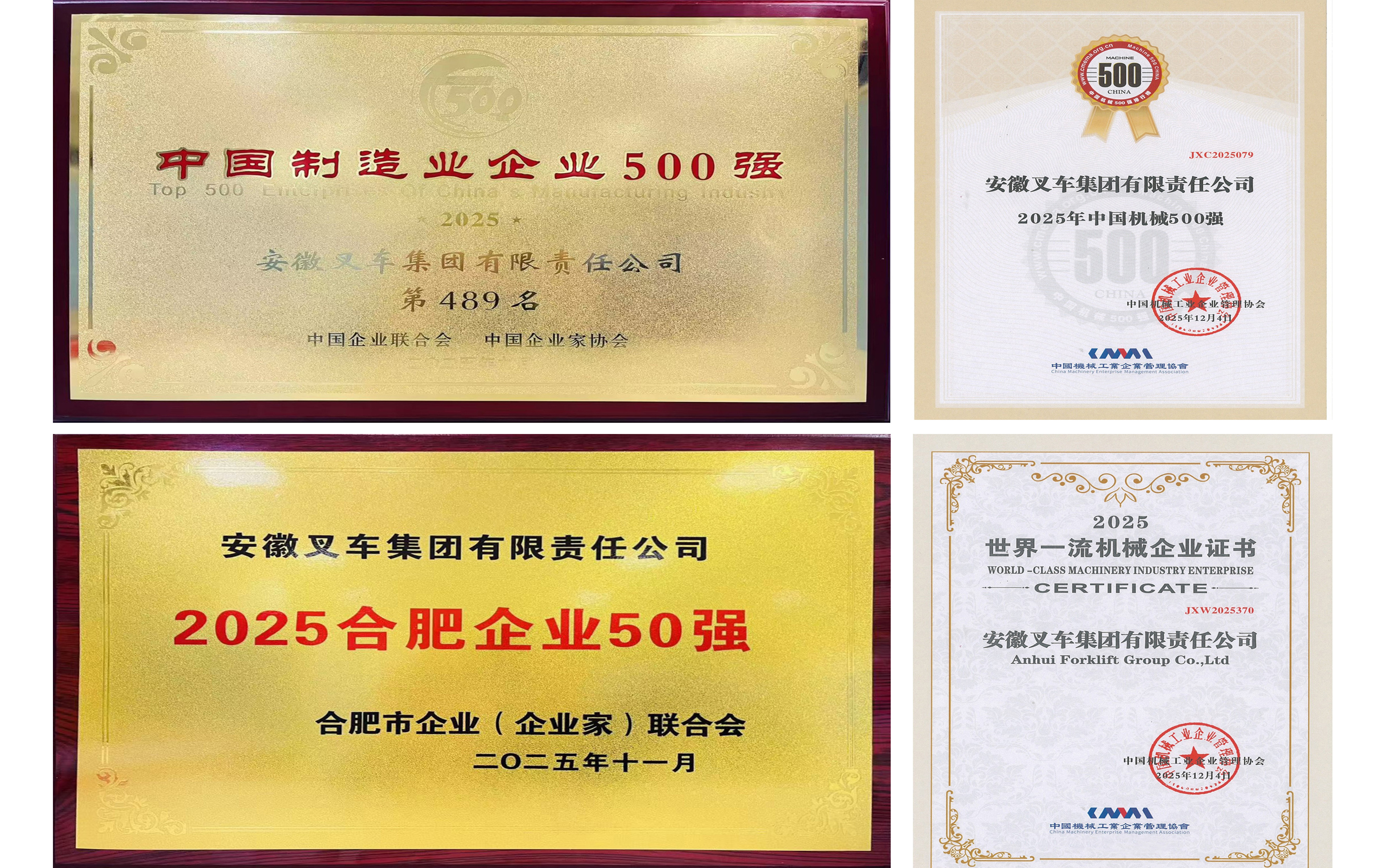 “十四五”發(fā)展看合力丨五載奮楫創(chuàng)佳績 榮譽登高啟新程——安徽叉車集團榮登多項榮譽榜單